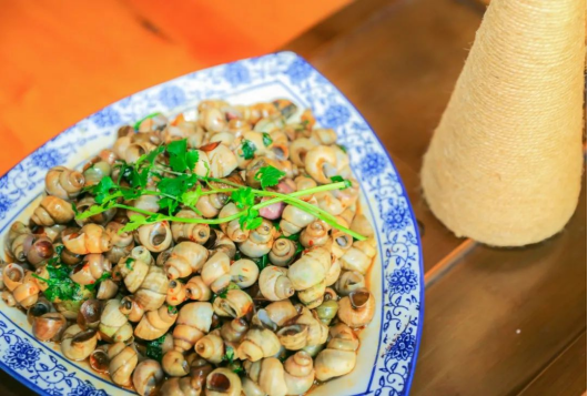 在盐城大纵湖畔,明前白壳螺蛳也曾上市,鲜活爽滑的口感尤其受到门客瞩目。水质表示的盐城大纵湖盛产螺蛳,大纵湖螺蛳分青白两种,白壳螺蛳为稀奇水居品,滋味杰出鲜好意思,是沿途“江苏名菜”。