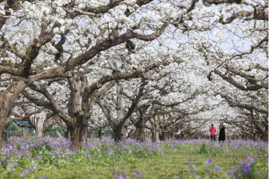 从小小花蕾打苞吐蕊,到满树梨花次序开放、花开如潮,在3月至4月的江苏,漫天彻地的梨花将如雪似霜,有余着浅浅的幽香。