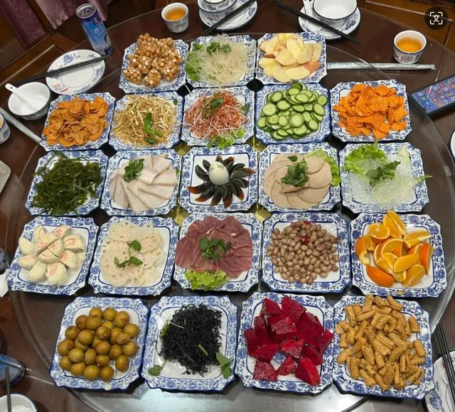 这里面包含热菜九碗,茶点和冷菜十三种,故称九碗十三花。