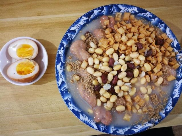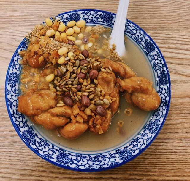 热烘烘的油茶泡着酥脆脆的麻花,还有炒好的油茶豆子粉,花生,杏仁,黄豆等,口感层层重复!一口油茶就麻花,香气在唇齿间推广,让东谈主品味。
