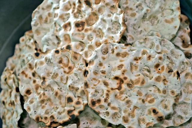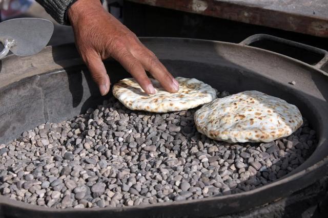 制作石子馍最初要将面粉加水揉成面团,然后分红小块,擀成薄片。将薄片放在烧热的石子上烙制,烙至两面金黄即可。