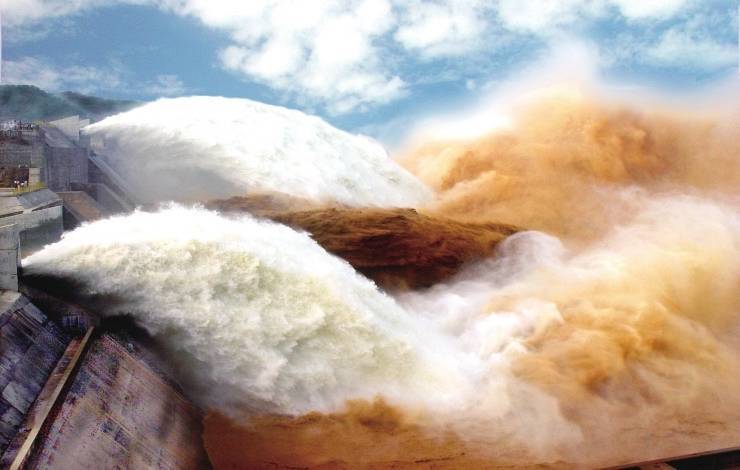 黄河小浪底水利瑕疵调水调沙现场。