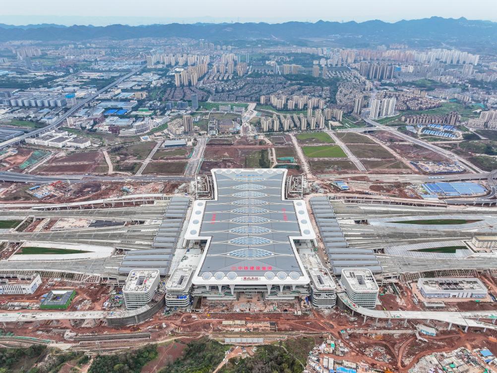 图为2月8日拍摄的重庆东站工程技俩设置现场(无东谈主机像片)。新华社记者 唐奕 摄