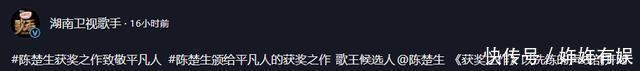 除此以外,驳斥区更是有不少网友直言: 又是芒果台搞的老本运作,确切演齐不演了! 真不怪网友们会这么说。 毕竟,此次陈楚生赢得冠军,真的太像是刻意安排好了相通......