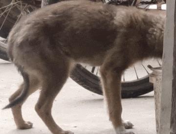 流浪狗偷吃家养狗的剩饭瑟瑟发抖