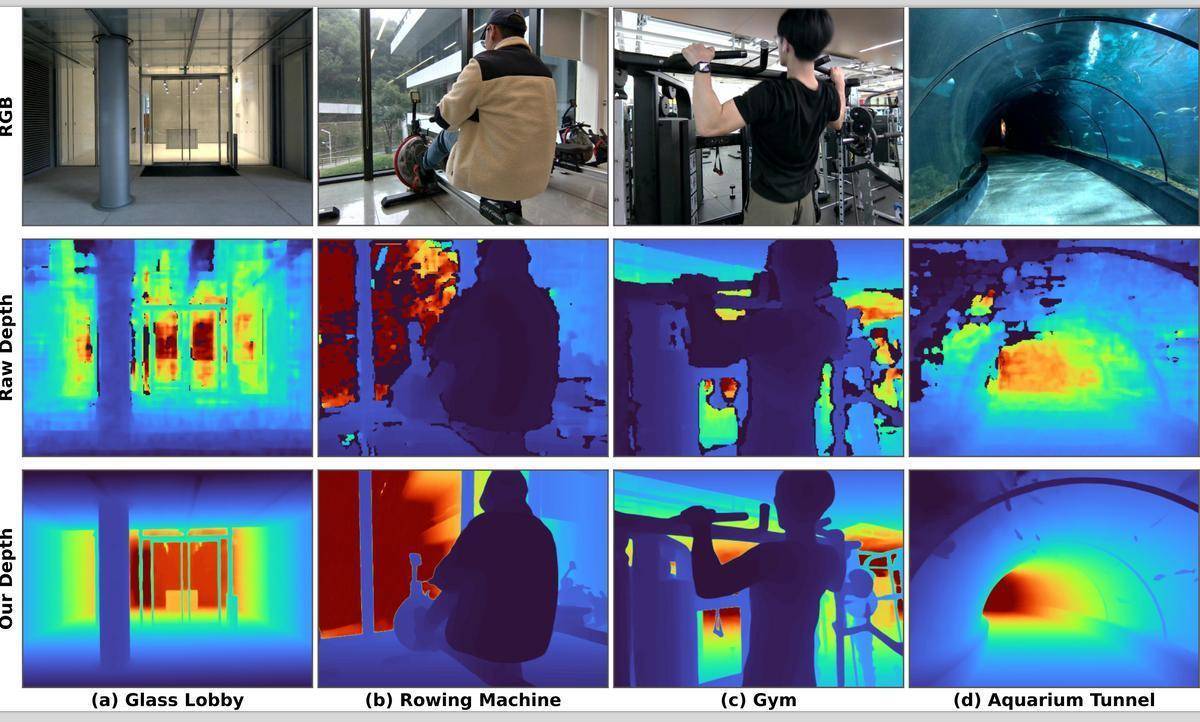 在家庭和工业环境中,玻璃器皿、镜面、不锈钢蛊惑等透明和反光物体物体十分常见,但却是机器空间感知的难点。传统深度相机受制于光学物理特色,在靠近透明或高反光材质时,频频无法摄取灵验回波,导致深度图出现数据丢失或产生噪声。