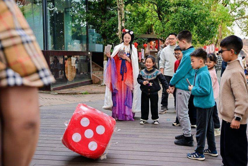 古戏台上,川剧演员正在上演变脸与长绸舞,台下不雅众层层贴近,叫好声不休。一位来自成都的旅客张先生暗示,他专诚带着家东说念主来平乐过年,“孩子第一次看川巨变脸,合计相等新奇。古镇里年味很足,比在城市里过年淆乱多了。”
